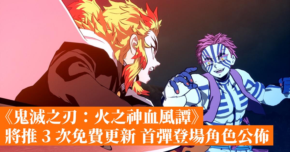 《鬼滅之刃:火之神血風譚》推出日還有 3 天,官方今天率先發表了遊戲推出後的免費更新內容,並公佈了首彈登場可使用新角色!