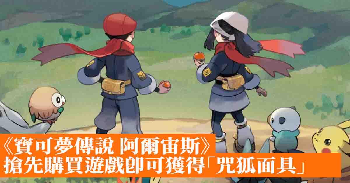 搶先購買《寶可夢傳說 阿爾宙斯》除了可獲得已經公布的特典內容,更可獲得「咒狐面具」。到2022年5月9日為止,只要在遊戲中的「神秘禮物」選擇「透過網路接收」即可領取。戴上這個以索羅亞克(洗翠的樣子)為主題,外觀獨特的「咒狐面具」,在洗翠地區展開冒險吧!