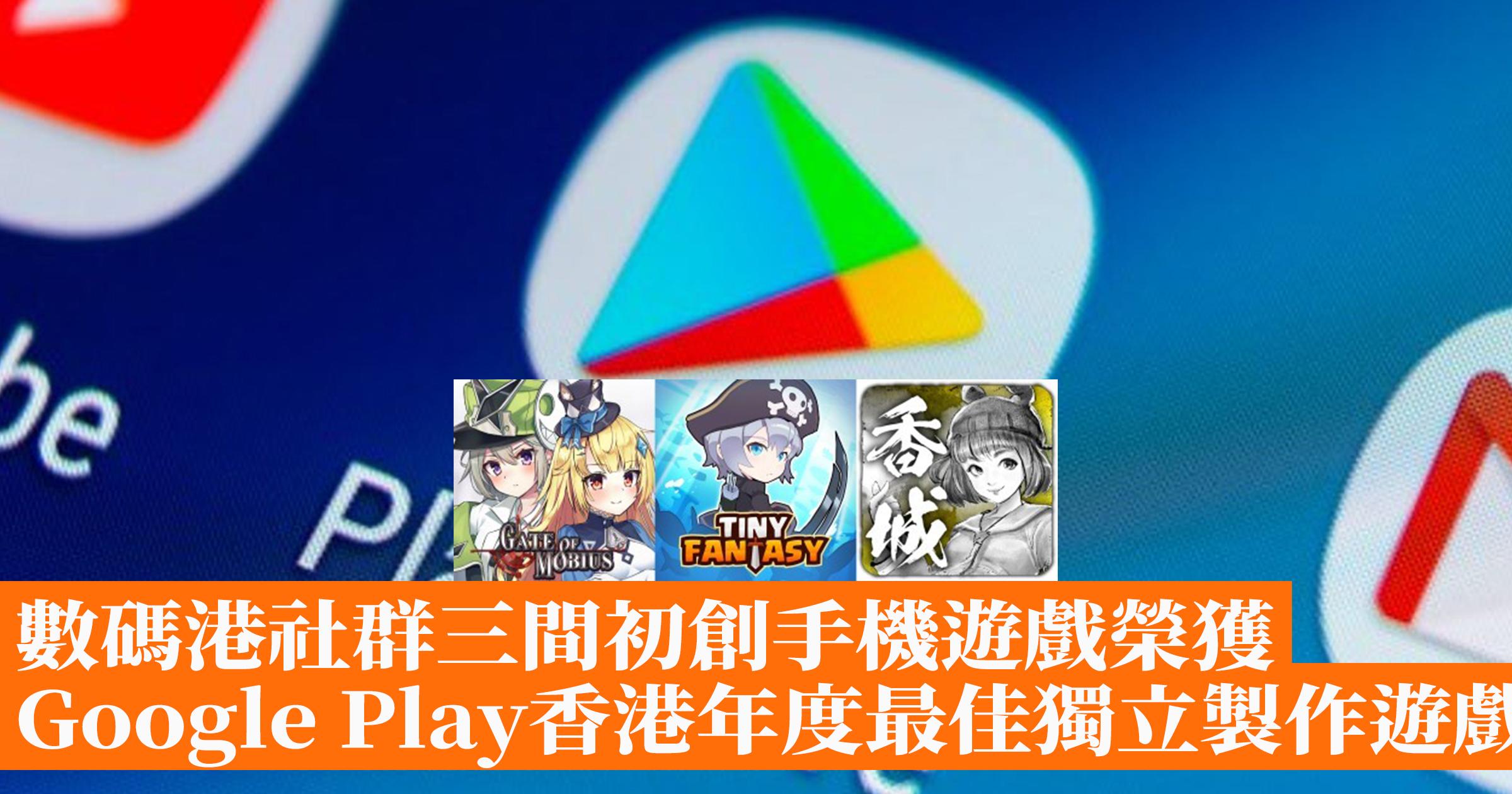 數碼港三間培育初創設計的手機遊戲, 包括(由左至右)哥布林遊戲公司的「梅比斯之門」、迷你龍公司的「迷你戰記:動作冒險RPG 」,及添使命工作室的「打工英雄傳2:香城風雲」;入選2021年Google香港區年度最佳獨立製作遊戲。