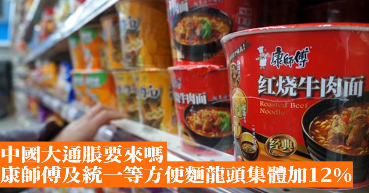 據悉,目前,康師傅將中國地區桶麵從4元漲至4.5元,統一袋裝方便麵的價格從原本的2.5元調整為2.8元,日清則一次性對旗下約180款方便麵進行加價,最大加幅達到了12%。