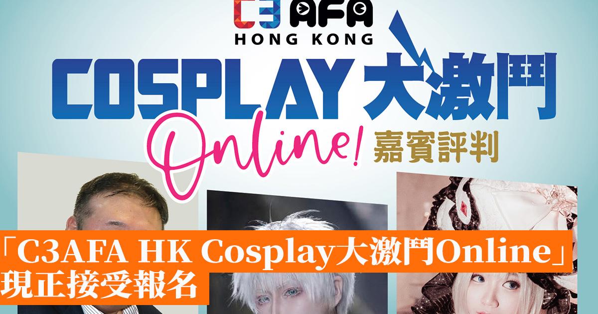 「C3AFA HK Cosplay大激鬥Online」現正接受報名,有意參賽人士須以2人一組,於5月9日或之前,到指定網頁填寫報名表格並上載Cosplay造型相片及不少於1.5分鐘的Cosplay造型表演短片,內容自由創作,例如「劇情相關動作情節」、「作品相關歌唱舞蹈表演」、「衣裝製作講解」等等。比賽結果將於5月16日或之前,於C3AFA HK Facebook Fan Page及Instagram公佈。有關比賽詳情可於以下網頁查閱:
