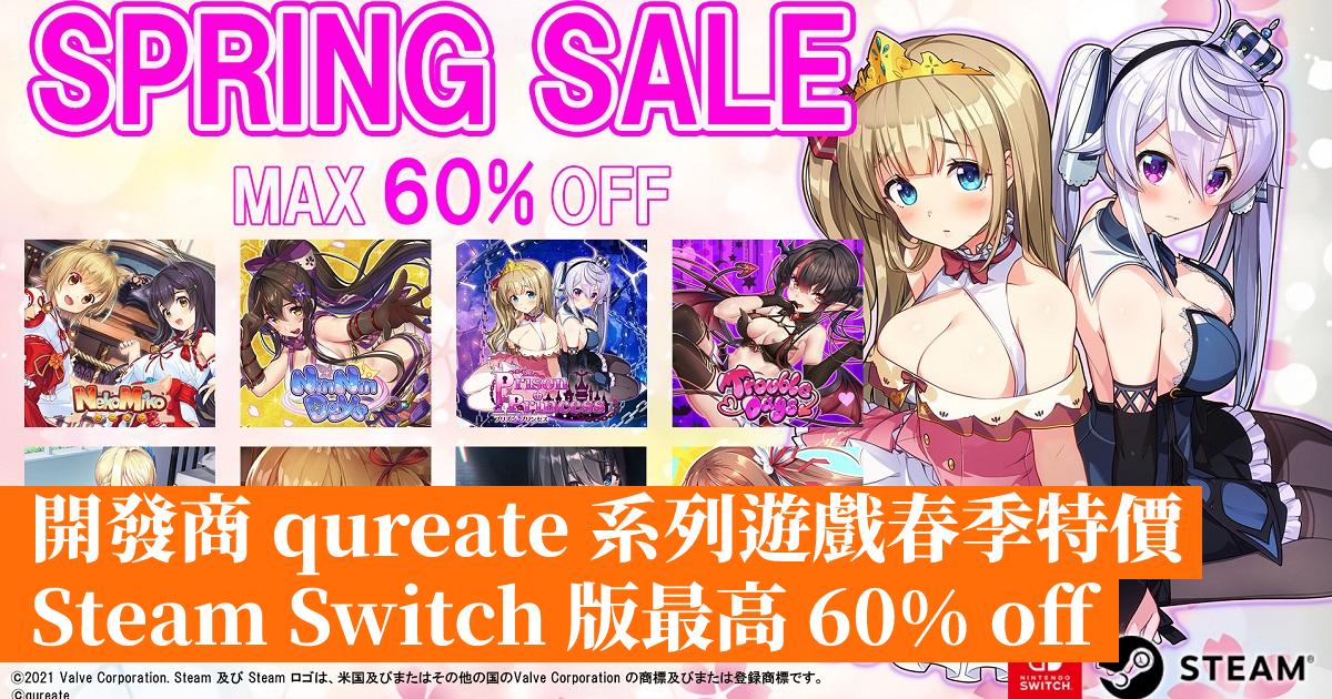 日本紳士系列遊戲開發商 qureate 今天宣佈,公司旗下作品的春季特賣於今天 3 月 17 日正式開始,包括日本 Switch 與 PC Steam 平台版本都推出優惠。