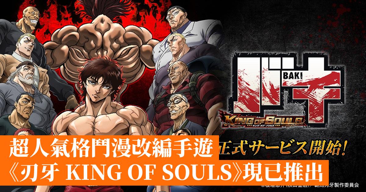 《刃牙 KING OF SOULS》是累計發行超過 8500 萬的超人氣格鬥漫畫《範馬刃牙》改編手機遊戲,為記念原作漫畫推出 30 周年開發,系列原作的角色們將會在遊戲中登場,讓玩家收集組隊進行地下激鬥。