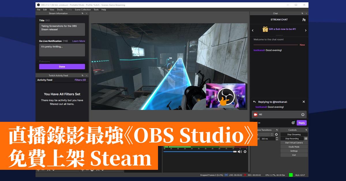 直播錄影最強《OBS Studio》免費上架 Steam
