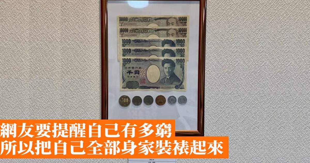 在博物館中裱起來的藝術品,都是非常有價值的,而這位推主選擇將自己僅有的資產全部裱起來,也是十分有趣的創意。推主「りっさん@hottomotting」這麼做的動機,是因為還是大學生的他太窮了,所以就冒出了一個把錢裱框的想法,雖然不知道這是不是他這個月的生活費,但想想如果可以留著不用,反而是一種有效的儲蓄,看起來也十分有藝術感,而且還會提醒自己不要亂用。