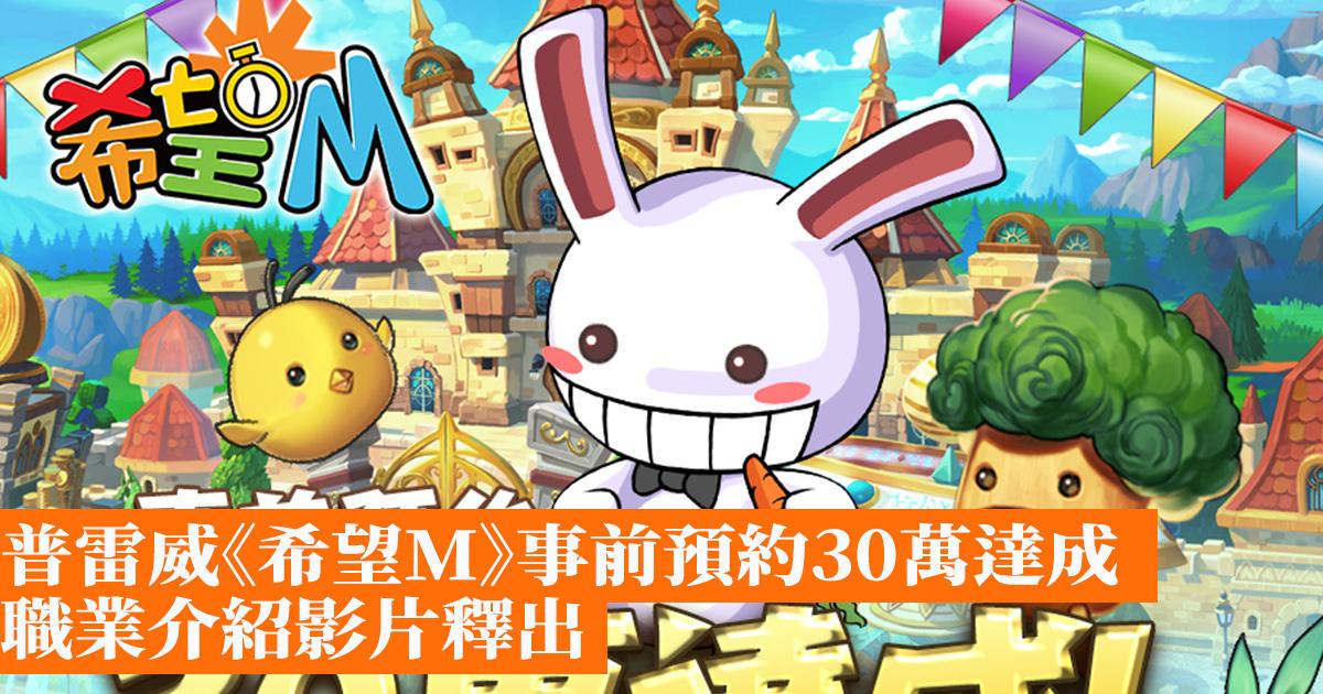 《希望M》事前預約日前已如火如荼的展開,目前預約人數已達成30萬,恭喜各位冒險家們達成解鎖「哈比兔套裝」一套,下一目標預約人數50萬將解鎖限定坐騎「希望瘦的虎」。