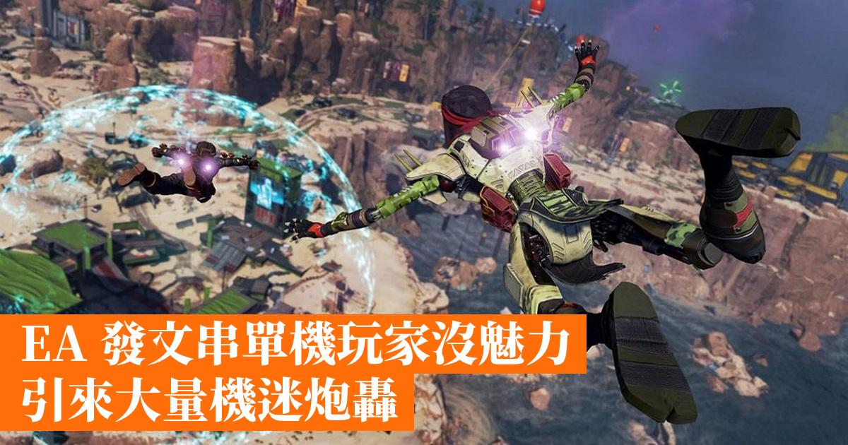 而 EA 發文這句就直指只玩單機遊戲的玩家都是缺憾沒有魅力,引來非常多的玩家與網民不滿,就連開發《Apex 英雄》的 Respawn Entertainment 創辦人 Vince Zampella 也回應表情圖案這此表示「沒眼看」。
