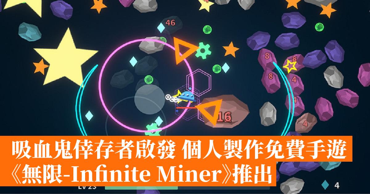 《無限-Infinite Miner》是受到人氣 Roguelike 清版遊戲《吸血鬼倖存者》(Vampire Survivors) 開發的作品,玩家將會操作一架太空船,透過不同的攻擊方式來打碎不斷來襲的小行星,並收集資源進行升級生存。