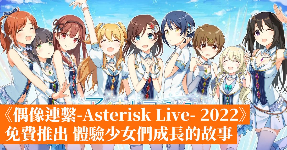 《偶像連繫-Asterisk Live- 2022》是一款描述 9 位在細小的偶像事務所,由普通的少女踏上舞台成為偶像的冒險手機遊戲,透過豪華的聲優陣容全語音演出,描寫她們向最高的舞台「Asterisk Live」夢想進發,努力成長的故事。