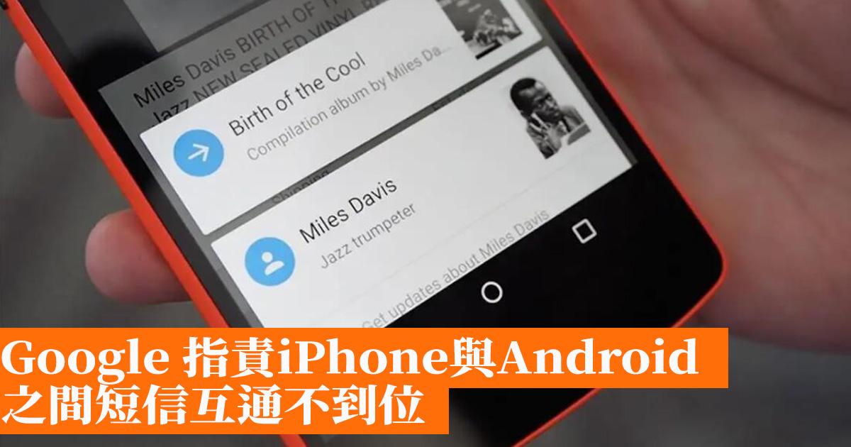 Google認為這些問題長久以來一直存在主要錯在蘋果,因為蘋果會將iPhone與Android裝置間發送的信息轉換成SMS和MMS,而這兩種轉換方法都是幾十年前為純文本而設計開發的,已經不適應如今的信息時代。