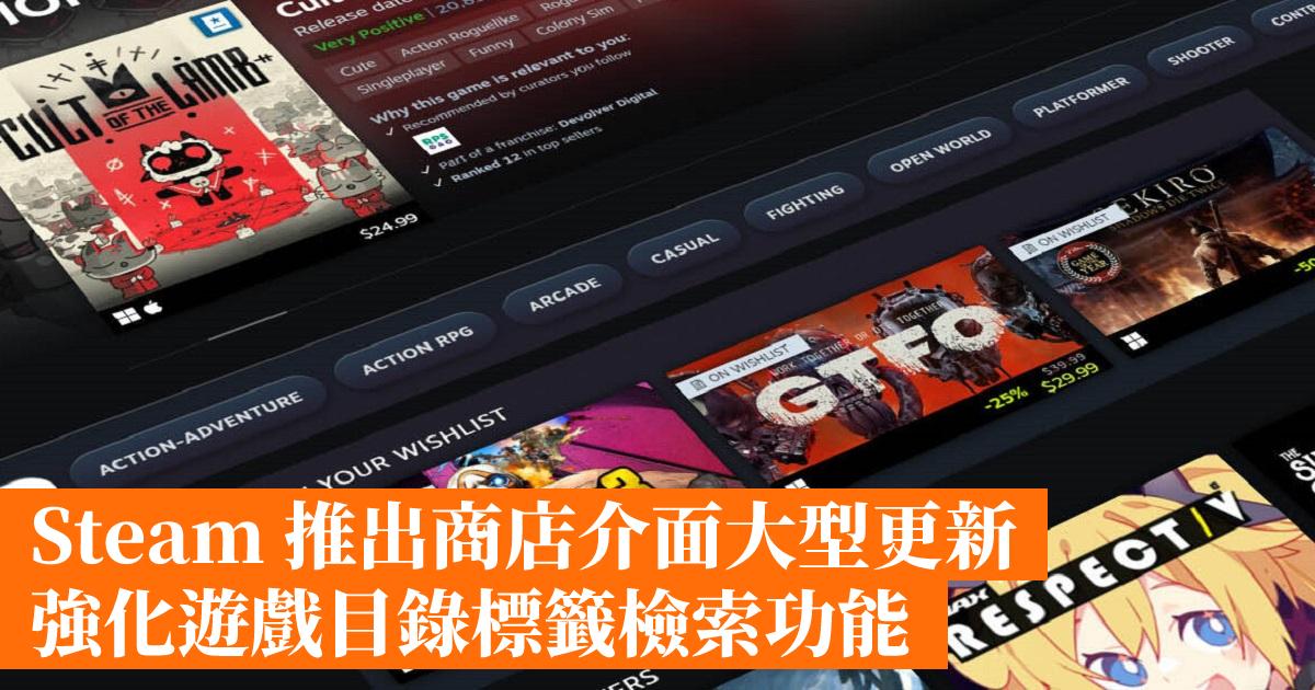 Steam 今天推出商店大型更新,為標籤、類型、類別和主題瀏覽頁面進行改善,新頁面會讓玩家更輕易地探索 Steam 上不同的小眾作品。如「多人」這種一般類別、或「太空」等主題、又或者「動作類 Rogue」這種非常明確的遊戲類型標籤。更為每一種標籤更詳細分類,如角色扮演遊戲又分為動作角色扮演、冒險角色扮演、日式角色扮演與更多類別。