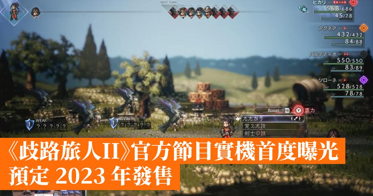《歧路旅人II》的 TGS 2022 官方節目上率先展示了遊戲的實機畫面,介紹更進一步進化的HD-2D畫面、新登場的八位旅人以及新系統。而且本作故事與前作沒有關連,所以新玩家在本作開始遊戲也沒有影響。