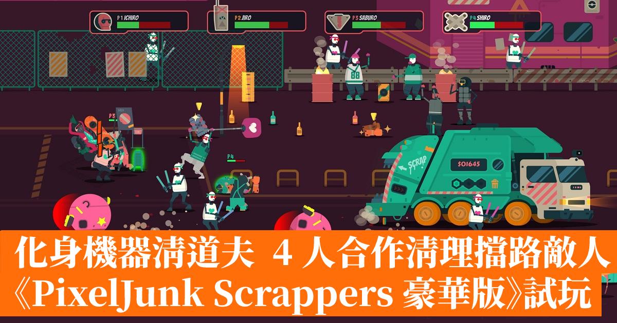 《PixelJunk Scrappers 豪華版》之中,玩家將化身為機器清道夫小隊「Scrappers」,努力清理近未來的骯髒城市。獨自打掃街道,或是組成最多四名玩家的終極小隊。在垃圾城,時間就是金錢,所以你以可以把垃圾在手中堆高高再扔給隊友,以此提高效率,進而贏得更優渥的報酬。