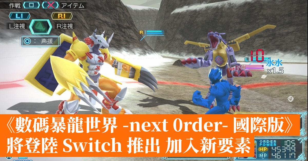 跟據日本遊戲情報網站 ryokutya2089 消息,《數碼暴龍世界 -next 0rder- 國際版》將於 2023 年 2 月 22 日移植到 Switch 平台發售,並會加入「初學者模式」與「跑步」功能讓遊戲體驗更舒適,暫時未知 PS4 版會否跟隨更新。