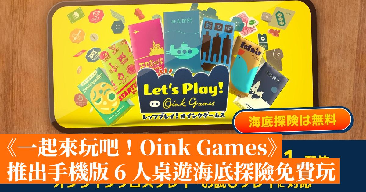 《一起來玩吧!Oink Games》是於 Switch / PC Steam 等平台上推出的派對桌遊電子版,官方宣佈即將於 12 月 1 日推出手機版,並會提供其中一款支援 6 人遊玩的桌遊「海底探險」讓大家免費遊玩,並可以自由選購其他遊戲。