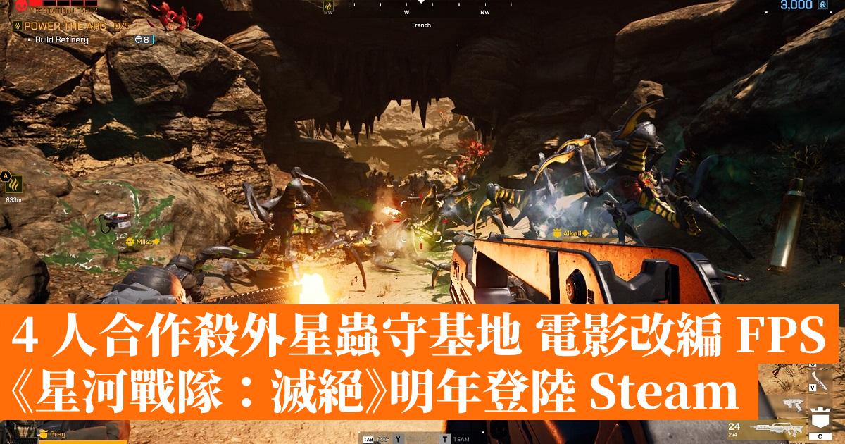 《星河戰隊:滅絕》是一款改編自知名電影《星河戰隊》的全新合作 FPS 遊戲,同場 12 位玩家以 4 人一組的小隊形式,合作保衛人類的基地,與原作出現的殘酷外星蟲族作戰,為人類聯邦奪回失落的殖民地。