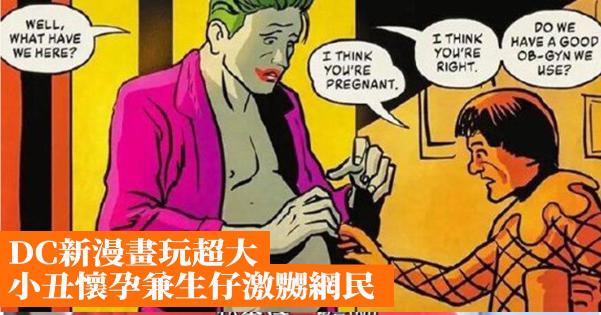 於是,在漫畫中,敞開衣服的小丑肚皮隆起,被告知「你懷孕了」,小丑對消息看起來並不意外並進一步追問道,「有婦產科醫生嗎?」接著,真的有一名婦產科醫生前來接生了。反派人物的「生育」過程也不尋常,正常「生育」失敗後,他吐出了一堆不明褐色液體,這些液體最終重新凝聚成一個孩子。