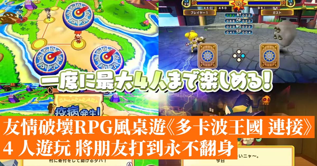 《多卡波王國 連接》是 2007 年在 PS2 發售,之後移植到 Wii 的《多卡波王國》最新移植版,今次加入線上遊玩功能在 Switch 平台推出,除了與朋友「破壞友情」外,也可以與全球的玩家進行對戰!