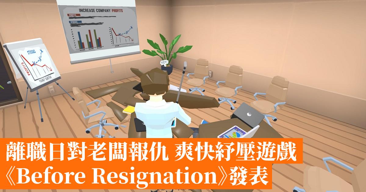 《Before Resignation》遊戲中,玩家扮演一位在公司受到不公平待遇,決定離開這個令人討厭的職場時向老闆報復的上班族,你可以透過遊戲享受各種對老闆報復的紓壓玩法,如摘掉老闆的假髮、或者用油鍋打他等等。