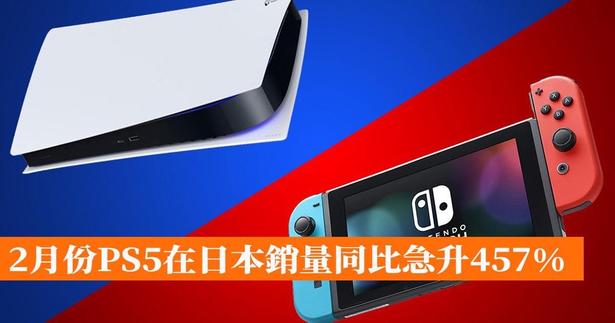 2023年2月份日本地區,PS5 的銷量超36萬台(具體為366982台),Switch銷量為221041位居第二。2023年2月份PS5在日本的銷量同比增長457%,2022年2月時該數據為65772台。