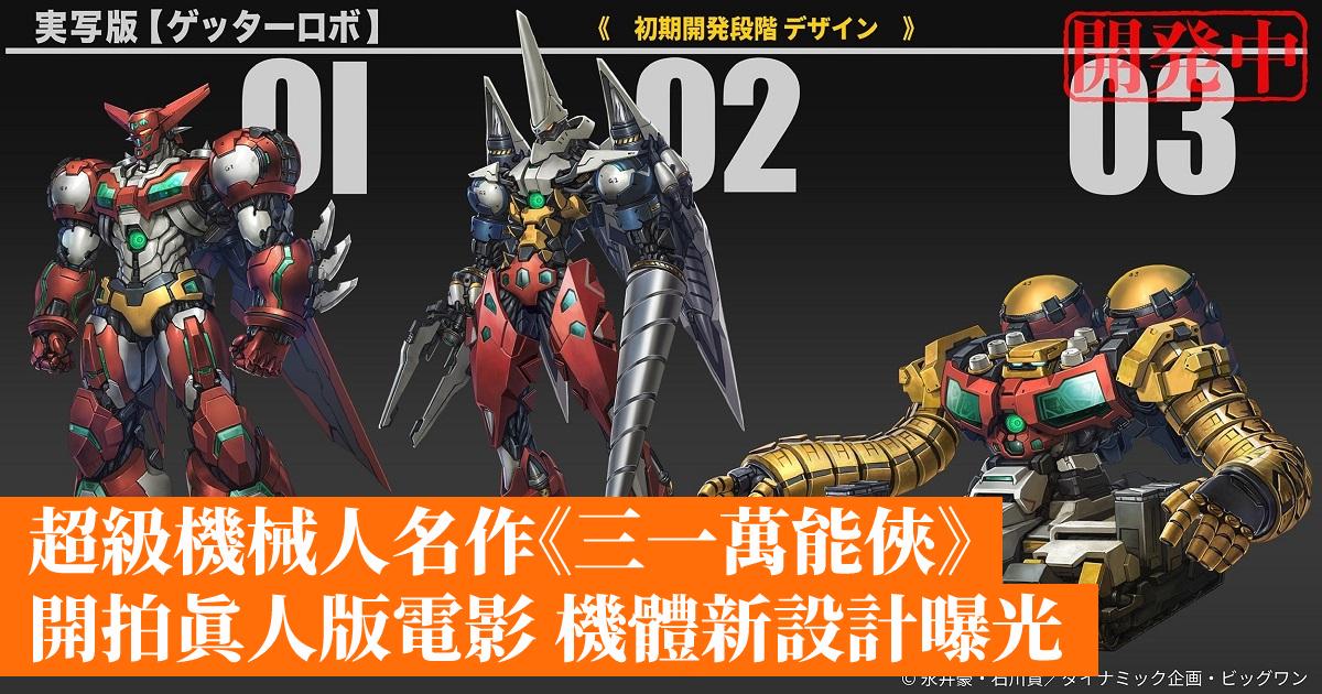 日本 BIGONE 今天宣佈,將開拍一部 永井豪&石川賢 原作的人氣超級機械人名作《三一萬能俠》真人版電影,並公開了全新機體設計。