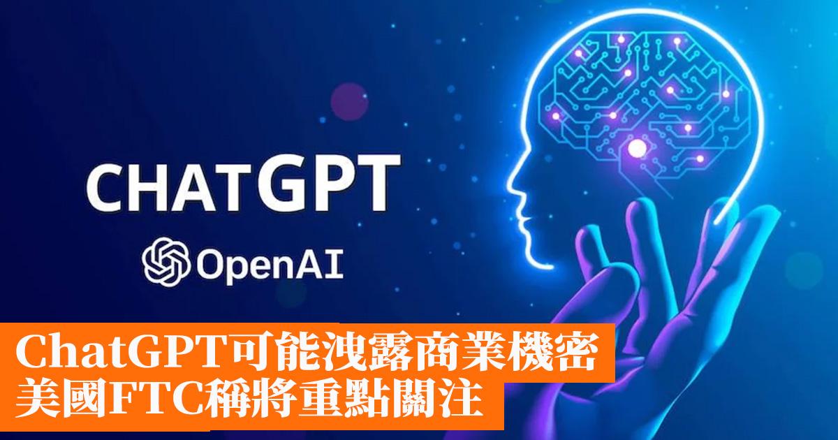 ChatGPT可能洩露商業機密 美國FTC稱將重點關注