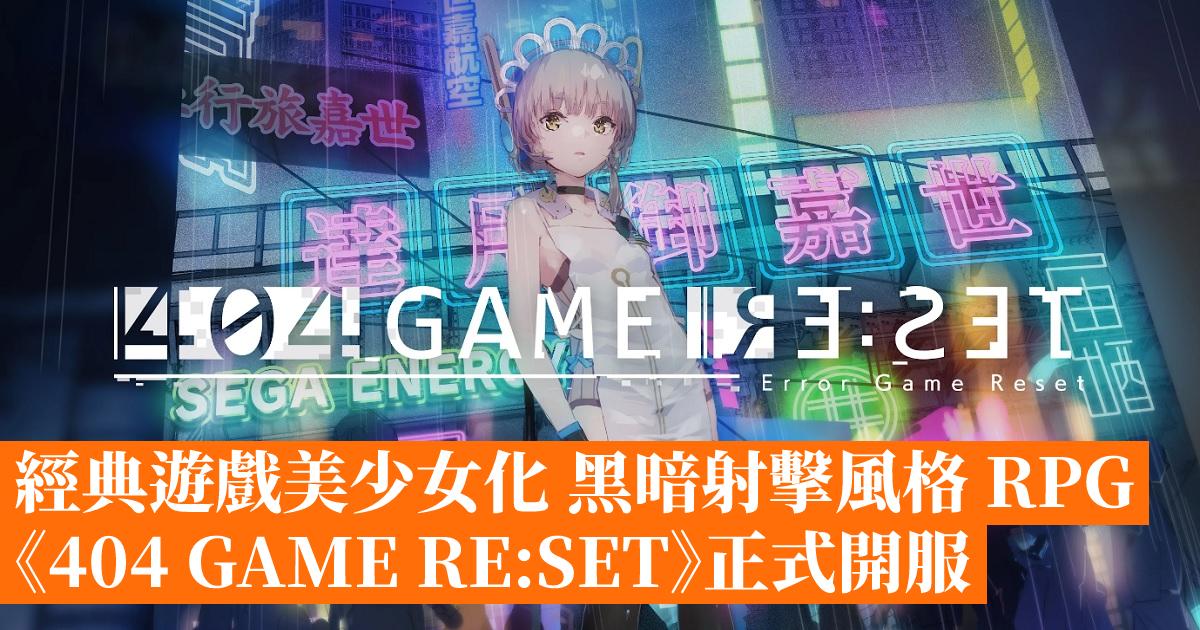 《404 GAME RE:SET -錯誤遊戲 Re:set-》是由橫尾太郎擔任創意總監,SEGA 開發的全新射擊風格 RPG 手機遊戲,故事講述 SEGA 稱霸了各項領域的巔峰,玩家遇見了神秘存在“X”並得知世界因為SEGA而扭曲了,為了找回原來的世界,決定參與這場與SEGA的戰鬥。