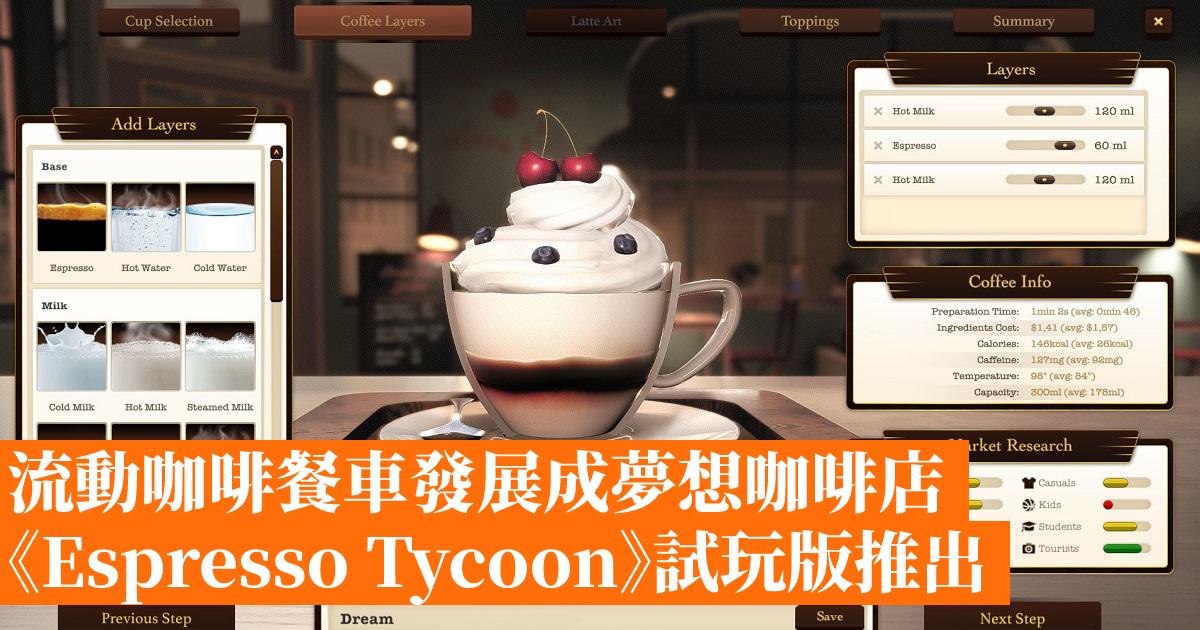 流動咖啡餐車發展成夢想咖啡店《Espresso Tycoon》試玩版推出