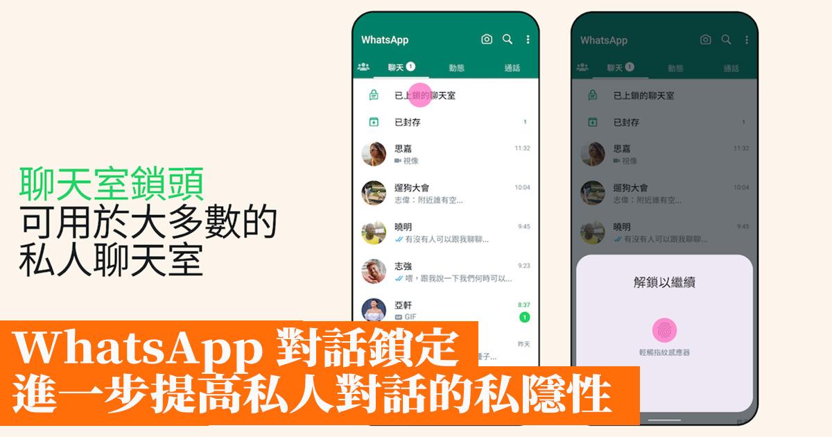 WhatsApp 對話鎖定 進一步提高私人對話的私隱性