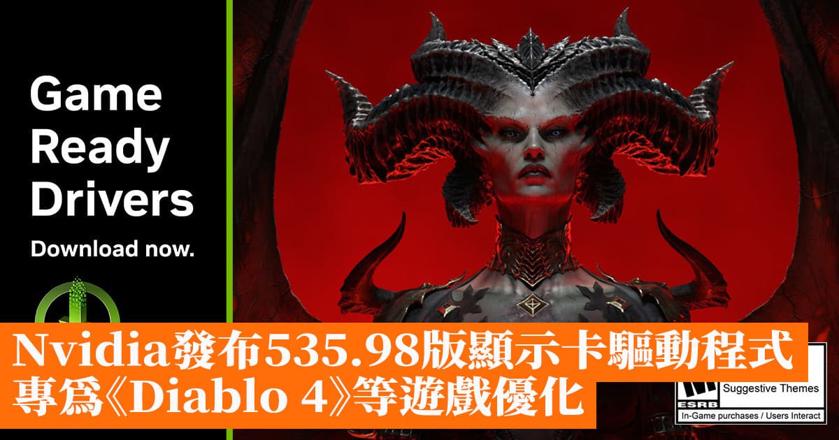 Nvidia發布535.98版顯示卡驅動程式 專為《Diablo 4》等遊戲優化