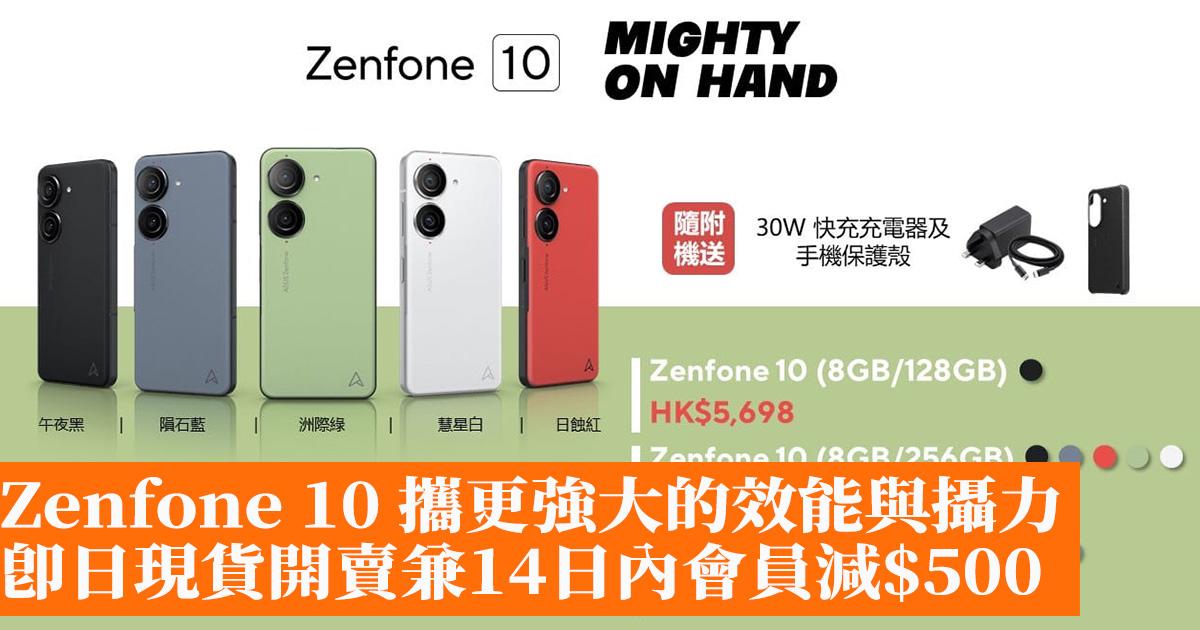 Zenfone 10 採用高通® Snapdragon® 8 Gen 2 處理器,最高支援 16 GB LPDDR5X 記憶體、512GB UFS 4.0 快閃記憶體,頂尖效能成就高速運算與低功耗。螢幕更新率最高 144Hz ,遊戲畫面精彩流暢。ZenTouch 2.0 觸控鍵、螢幕側邊欄 2.0 與雙擊/三擊背蓋,可自訂手勢與對應功能/ APP,快速啟動常用工具/ APP,單手切換操控自如。IP68 防塵防水,戶外使用無負擔;Dirac 頂級音效調校及 Hi-Res 認證的雙立體聲喇叭,音質細膩立體,享受沉浸式追劇樂趣。Zenfone 10 共推出三個版本,分別為 8G/128G、8G/256G 及 16G/512G 版本,建議零售價為 HK$5,698、HK$5,998 及 HK$6,998。官方配件「Connex 智能配件套裝」包含多功能手機殼、便攜卡夾及自動開啟串流媒體的感應式手機架,可依需求組裝使用,建議零售價為 HK$339。