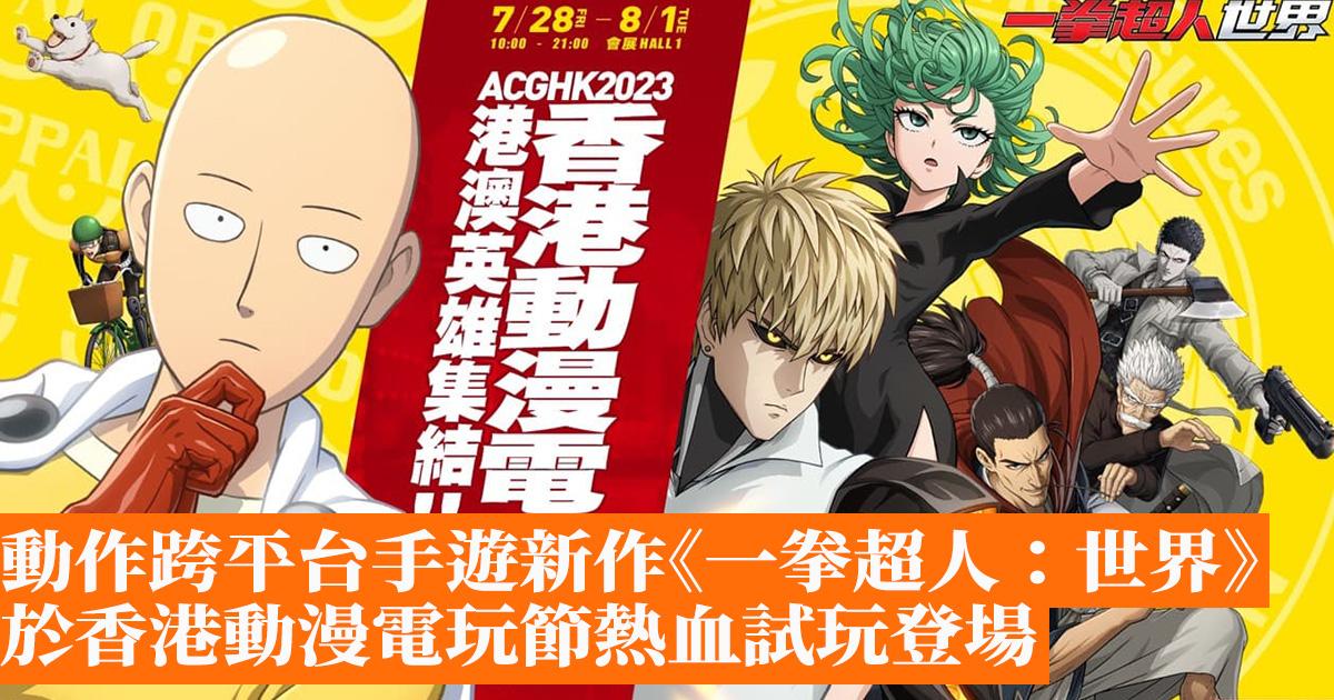 艾玩天地於今(7月28日)宣佈由 ONE 老師、村田雄介老師漫畫原作,日本集英社在內版權委員會監修,完美世界遊戲旗下 T3 Studio 所研發的首款一拳超人 3D 動作跨平台手機遊戲新作《一拳超人:世界》,於「香港動漫電玩節ACG HK2023」(E13攤位)從2023/7/28至2023/8/1熱血展出,參展首日已吸引大批人潮搶先體驗《一拳超人:世界》的熱血戰鬥爽感!