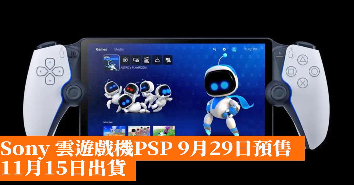 Sony 雲遊戲機PSP 9月29日預售 11月15日出貨