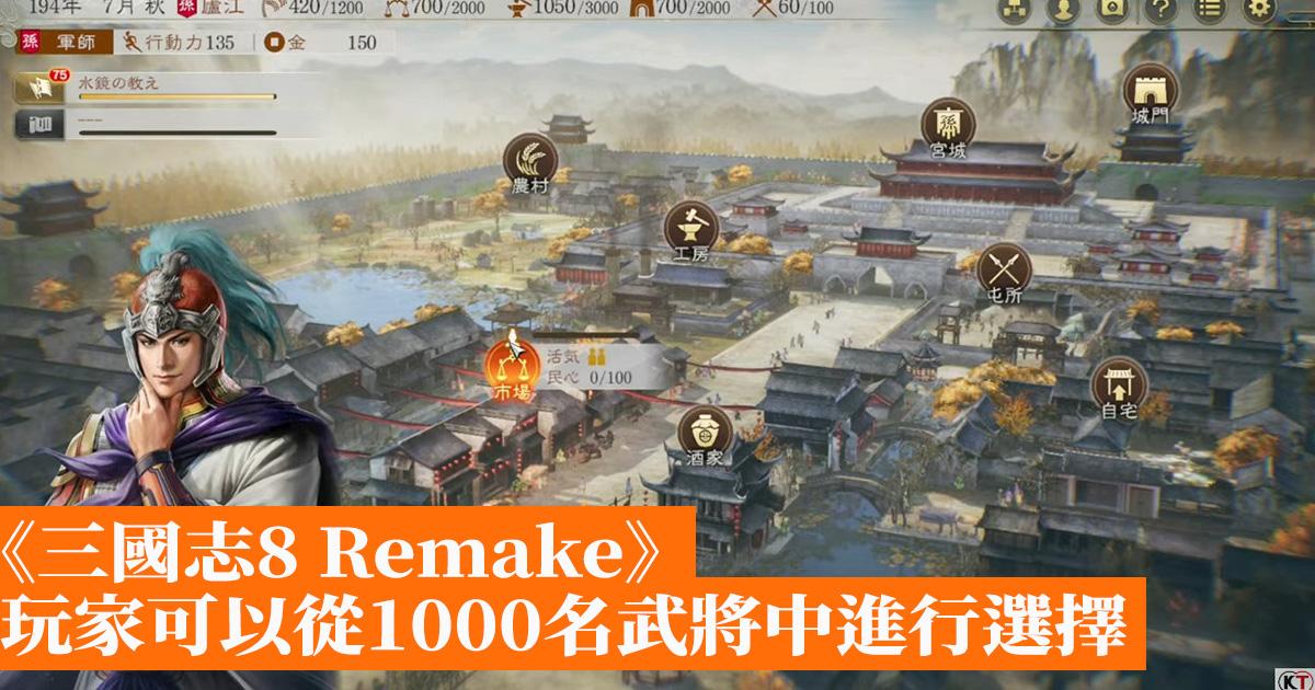 《三國志8 Remake》玩家可以從1000名武將中進行選擇