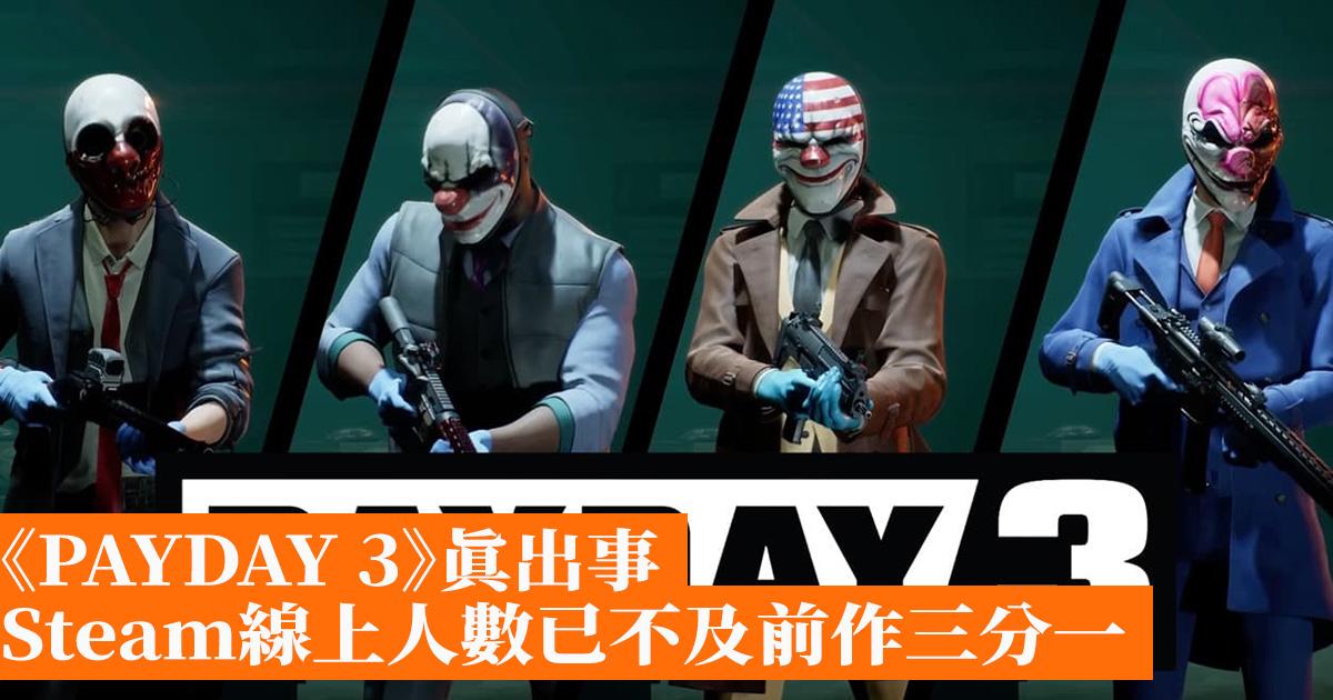 根據SteamDB顯示,《PAYDAY 3》的Steam線上人數已不及2013年發售的《PAYDAY 2》的三分之一,24小時內《PAYDAY 3》的Steam在線人數為9181,而《PAYDAY 2》為35311,且《PAYDAY 3》的線上人數仍有下降趨勢。