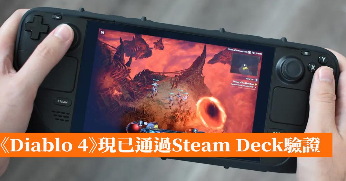 在《暗黑破壞神4 (Diablo 4)》登陸Steam 不到一周時間內,Valve 就已經讓該作通過了旗下手提電腦設備Steam Deck 的驗證,表示該作可以流暢在設備上游玩。
