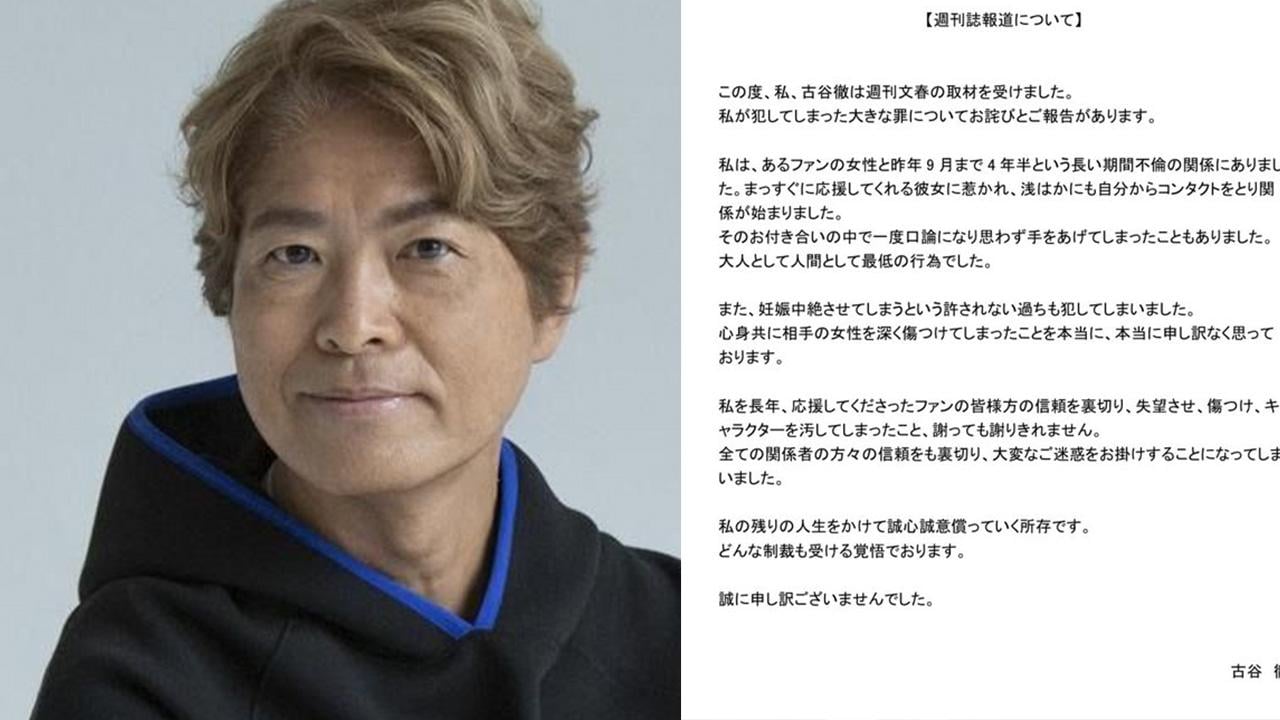 聲明最後,古谷徹表示將用剩餘人生來彌補過錯,並接受任何懲罰。