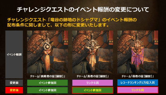 此次受到影響的包括活動任務「龍谷遺址的闢獸」,其獎勵制度將作出以下調整: