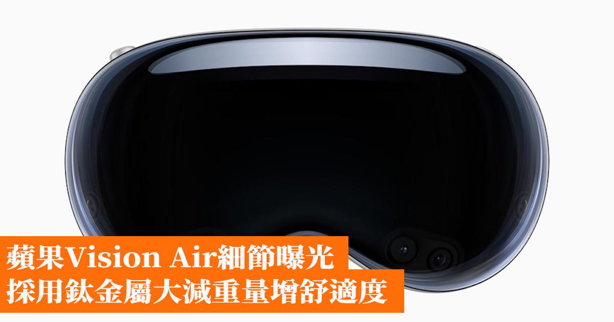 蘋果Vision Air細節曝光 採用鈦金屬大減重量增舒適度