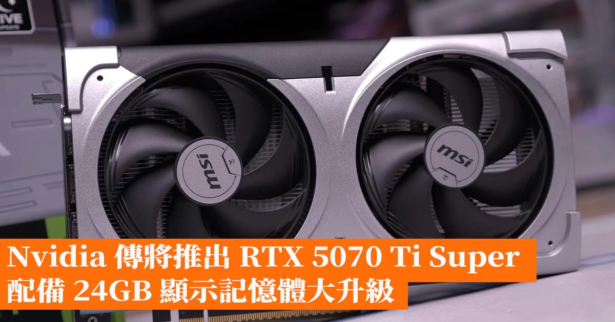 Nvidia 傳將推出 RTX 5070 Ti Super 配備 24GB 顯示記憶體大升級