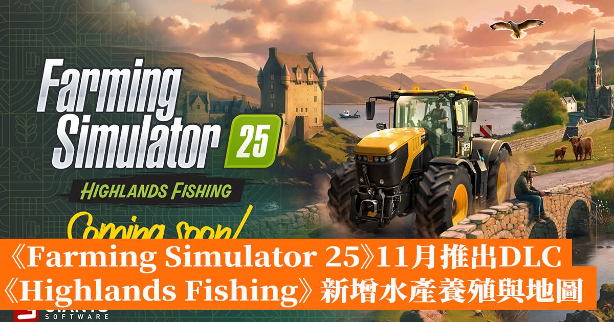 GIANTS Software 今日宣布,旗下模擬遊戲《Farming Simulator 25》將於2025年11月4日推出首個大型DLC《Highlands Fishing》,本次更新將帶來全新水產養殖系統與以蘇格蘭高地為主題的新地圖「Kinlaig」。