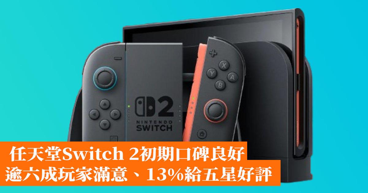 任天堂Switch 2初期口碑良好 逾六成玩家滿意、13%給五星好評
