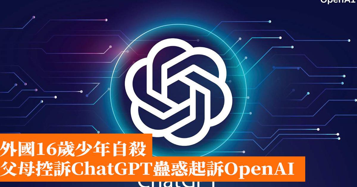外國16歲少年自殺 父母控訴ChatGPT蠱惑起訴OpenAI