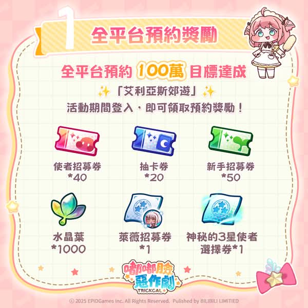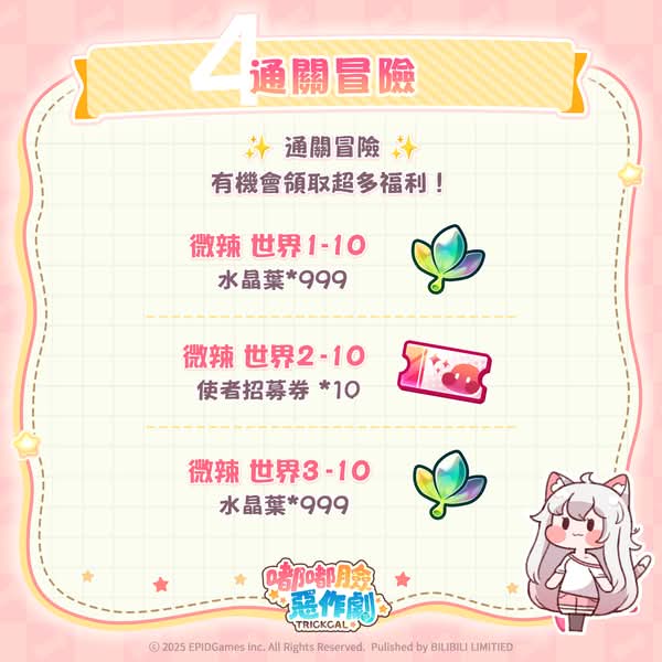 在福利方面,嘟嘟臉們給的禮物也毫不吝嗇,不僅可以直接無痛領取預約獎勵,更有多個開服限定獎勵、登入獎勵、新手獎勵、通關獎勵等等可以一直領一直爽。有請柯米為我們詳細說明一下有哪些福利吧!
