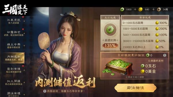 參與過本次測試並儲值的主公可在公測期間領取返利,返利內容以玉石形式呈現,確保主公投入價值完整返回。