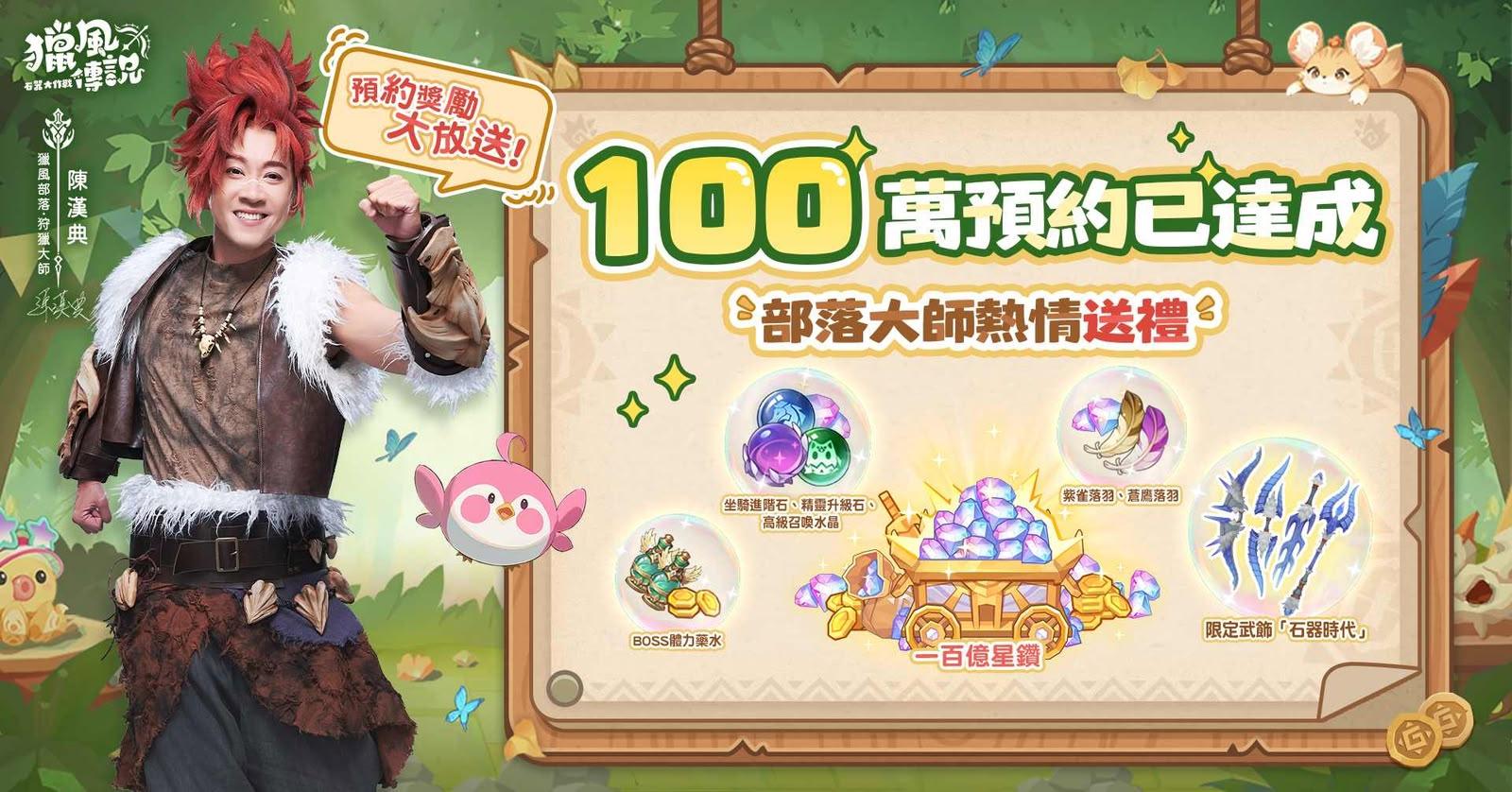 目前,《獵風傳說:石器大作戰》預約人數已正式突破100萬大關。為回饋廣大玩家的支持,官方已解鎖全檔位預約獎勵,包括:SSR台港澳限定寵物「卡佈佈