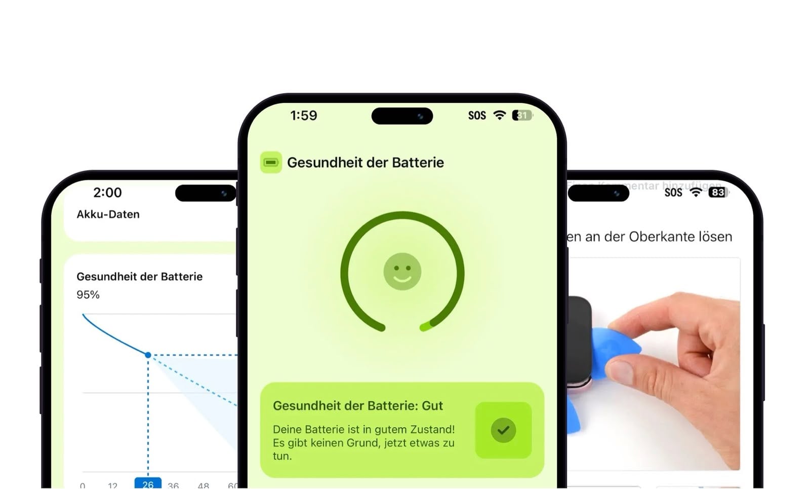 今次 App 最大亮點之一,是可顯示手機的電池狀態,包括實際容量、充電循環次數及長期容量衰減等資訊。iFixit 稱其電池分析比系統內建資訊更精準,但亦指出不同手機型號的數據讀取可靠度不一,因此該功能目前仍以 Beta 形式提供。