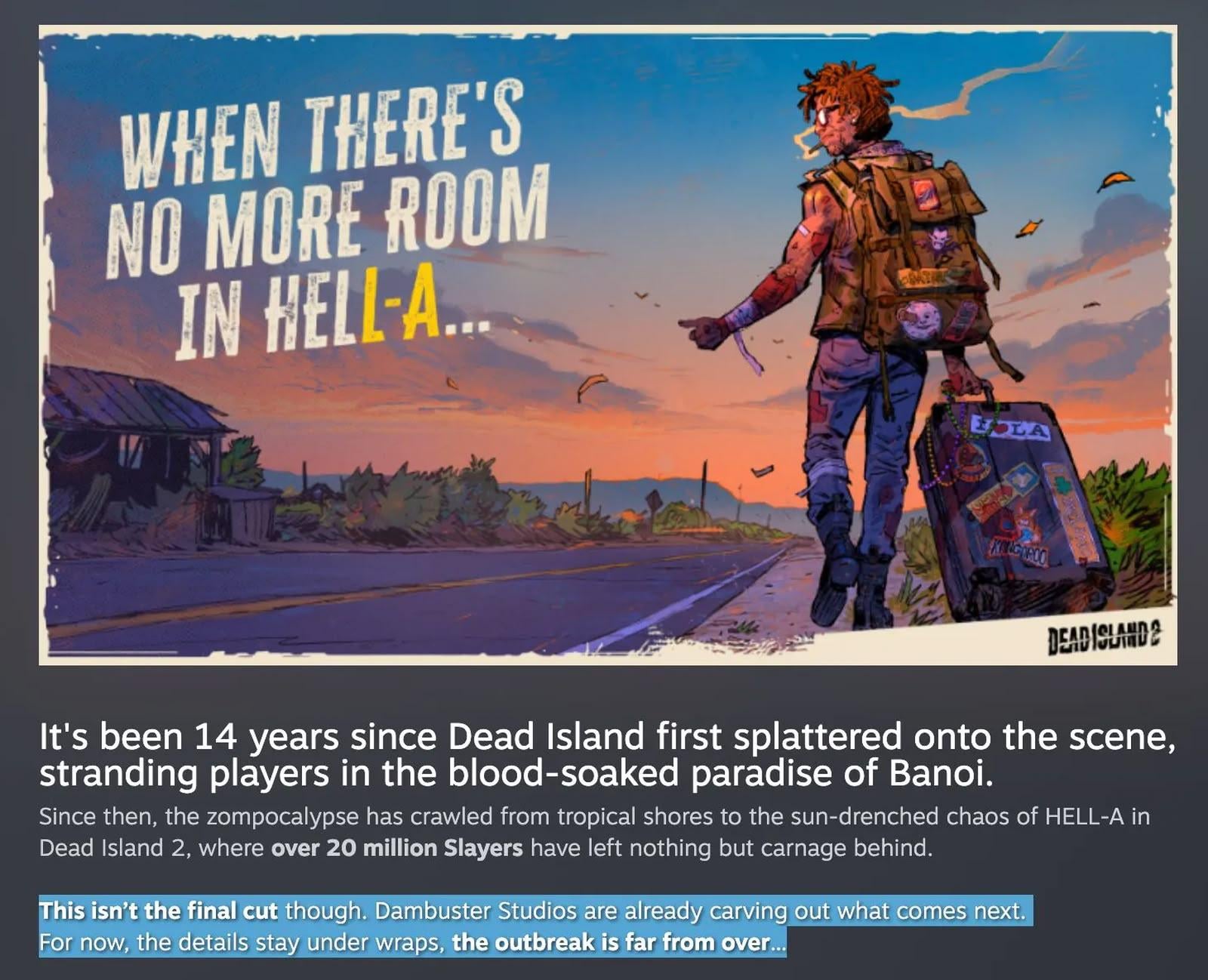 事實上,團隊早在《Dead Island》系列 14 週年紀念活動中,已曾暗示《Dead Island 2》將會迎來續作,因此是次確認並非完全出乎意料。不過,對於系列支持者而言,這仍然是一個令人振奮的消息,意味著《Dead Island》將於約兩年後再度回歸。