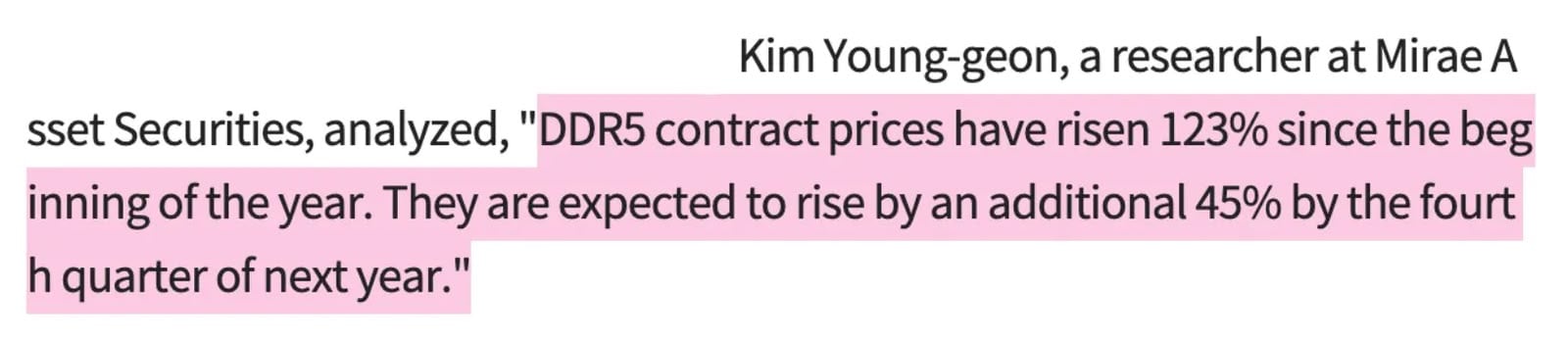 有韓國媒體引述產業消息指,目前 DDR5 記憶體每 GB 成本已達約 10 美元,32GB 或以上容量的產品價格更高。隨着 DRAM 成本持續上揚,不少硬件廠商正重新評估產品策略,包括考慮將新款手提電腦的記憶體配置回落至 8GB,甚至在手機市場重新出現 4GB RAM 的版本。