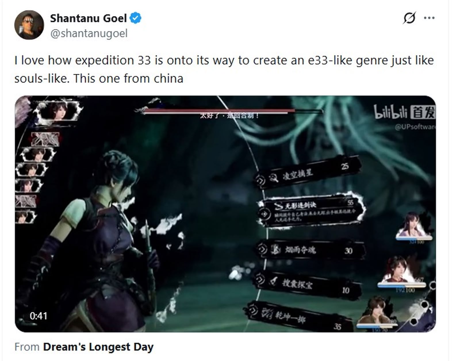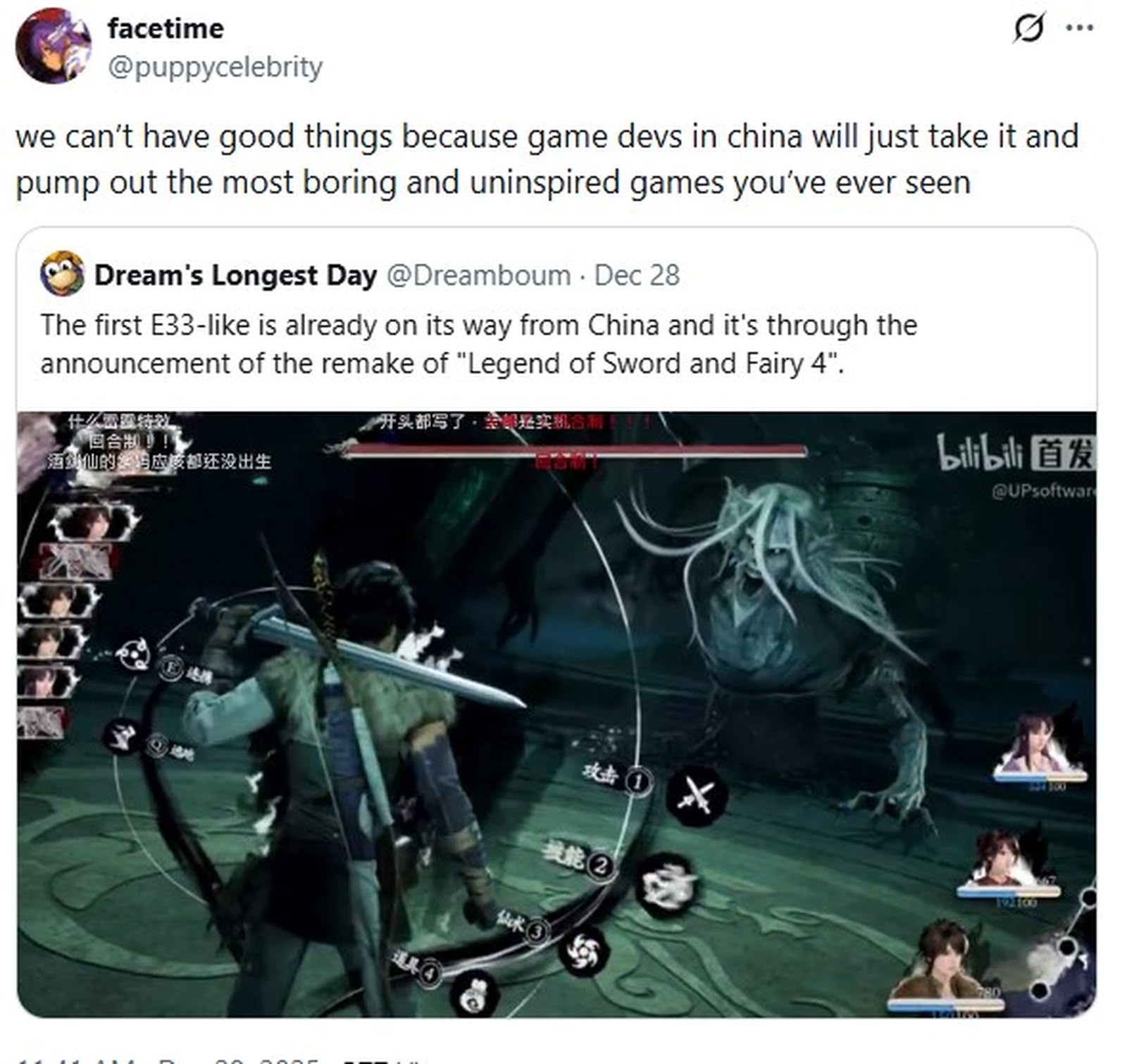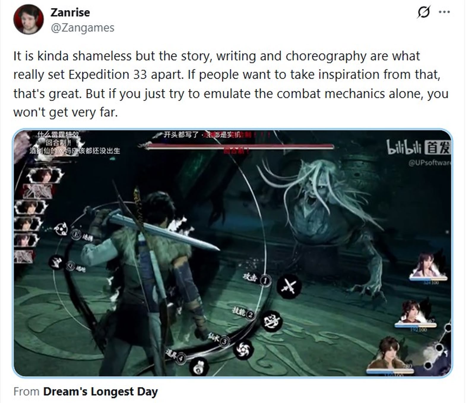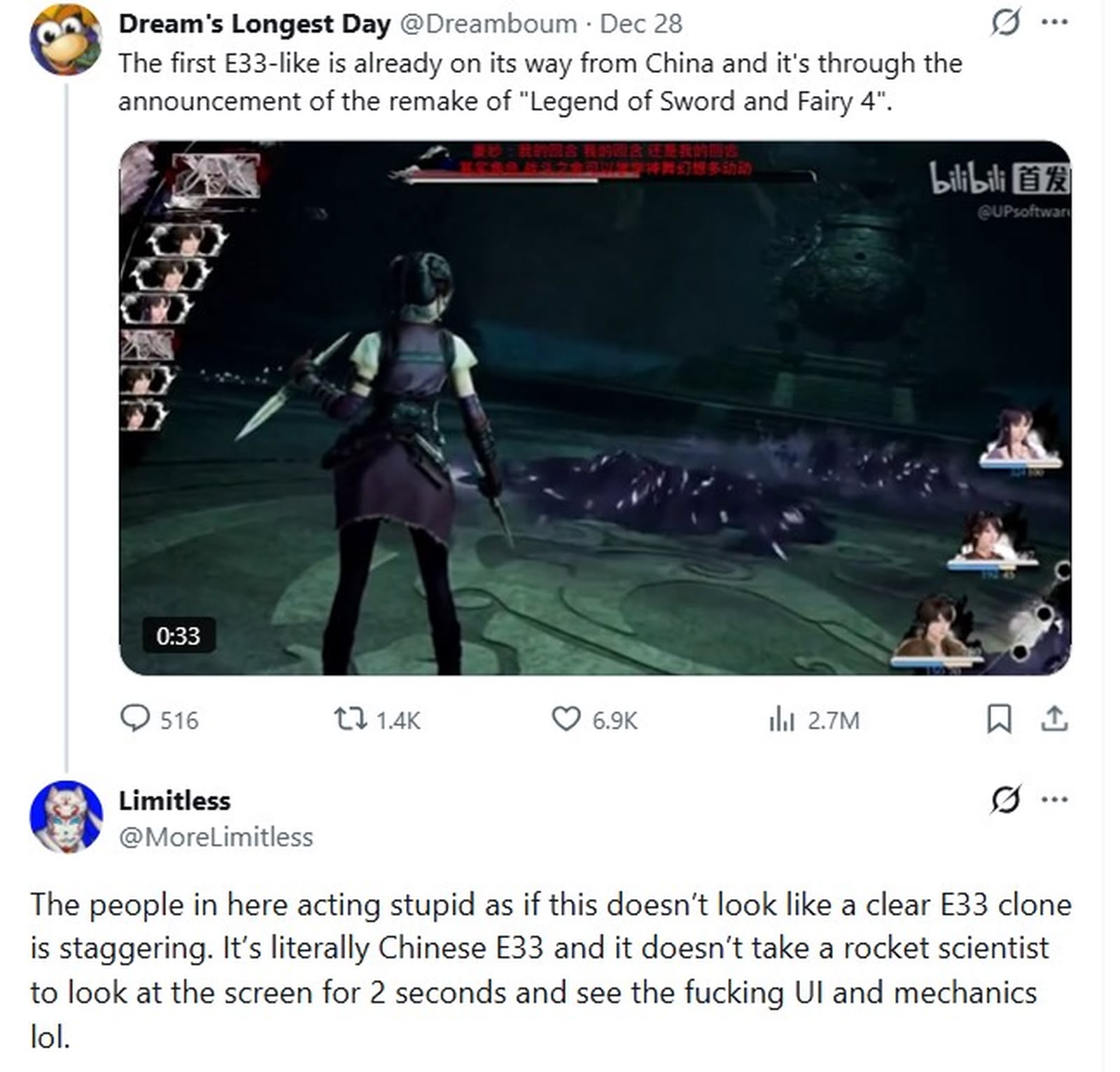 中國開發商 UP Software 近日公開《仙劍奇俠傳四》重製版首支預告片後,隨即被不少玩家拿來與《光與影:33號遠征隊》作比較。由於戰鬥系統設計,部分玩家更形容該作為首款「《光與影:33號遠征隊》式」作品。